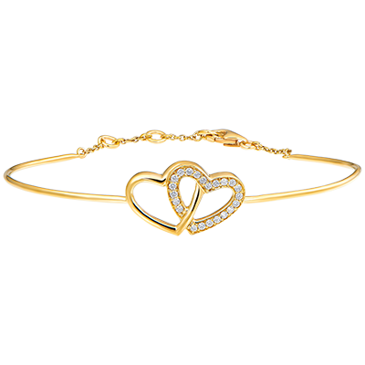 Un braccialetto rigido dalle dolci curve che unisce con delicatezza oro giallo e diamanti pavé. Braccialetto con chiusura a catena per una maggiore praticità.