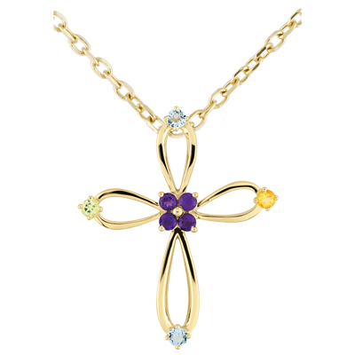 Ciondolo croce bizantina arrotondata - Oro giallo - 9 carati - Ametista - Quarzo citrino - Olivina