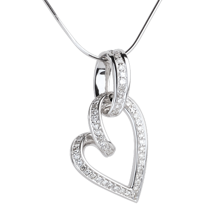 Un prezioso cuore in Oro bianco e Diamanti per un splendore tenero e delicato alla base del collo.