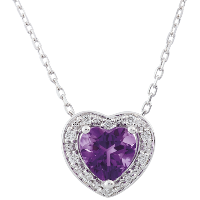 Collana Cuore Incantato - Oro bianco - 18 carati - 10 Diamanti - Ametista - 0.75 carati