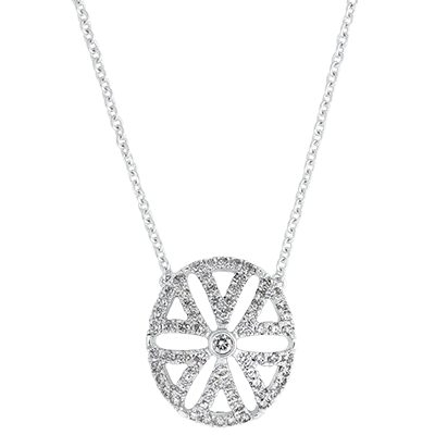 Un motivo floreale rivisitato in una forma grafica contemporanea per questo pendente traforato, dai contorni pavé. Un modello originale e raffinato. Con catenina regolabile a 42cm e 45cm.
