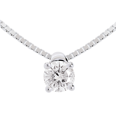 L'apologia e l'essenzialità di un diamante abbinato a una sobria catena in oro bianco.