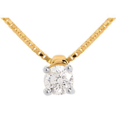 Con catena in oro 18 carati, lunghezza 42 cm con prolungamento fino a 45 cm.
