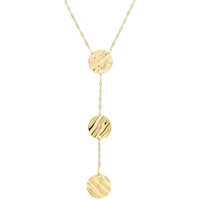 Tre cerchi in Oro giallo dalla superficie irregolare scintillano come ragggi di sole.