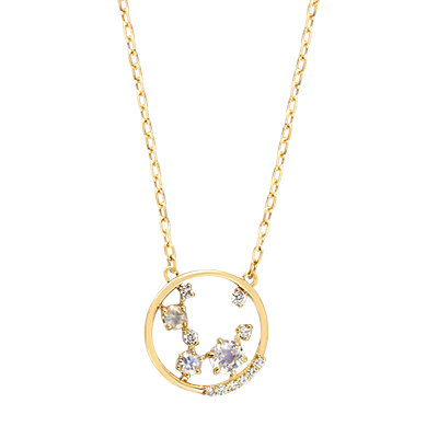 Tredici diamanti sintetici sbocciano in un cerchio dorato che ricorda una costellazione.Un gioiello luminoso e armonioso, pensato per chi ama portare con sé ogni giorno un tocco di stelle.