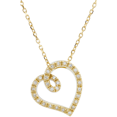 Un ciondolo a cuore dal design fluido è impreziosito da diamanti bianchi. Abbinato a una catenina in Oro giallo.