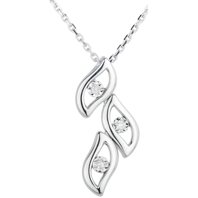 Questo gioiello vi è proposto in anteprima a un prezzo eccezionale per una durata limitata.Tre piccole fiamme d'Oro bianco e diamanti danzano alla fine di una catena a maglia rolò.