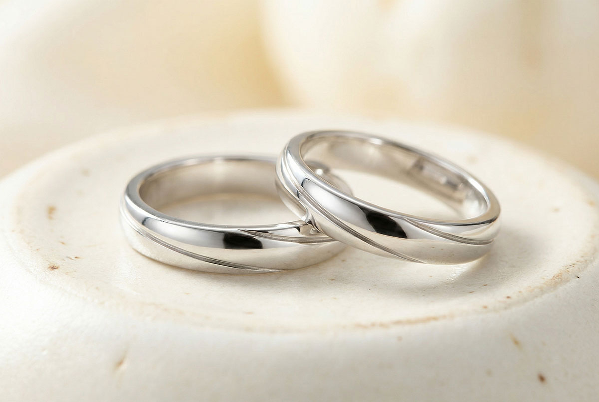 Coppia di Fedi Nuziali Saturno Trilogia - oro bianco-9 carati.