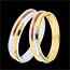 Una fascia in Oro giallo abbracciata da un nastro d'Oro bianco e rosa. Una fede a tre ori moderna ed unica.