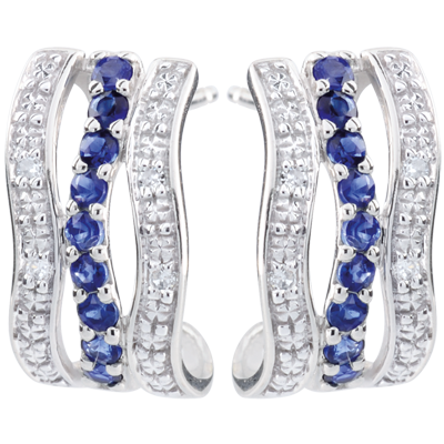 Orecchini a cerchio - Onda - Oro bianco - 9 carati - 8 Diamanti - 18 Zaffiri - 0.27 carati