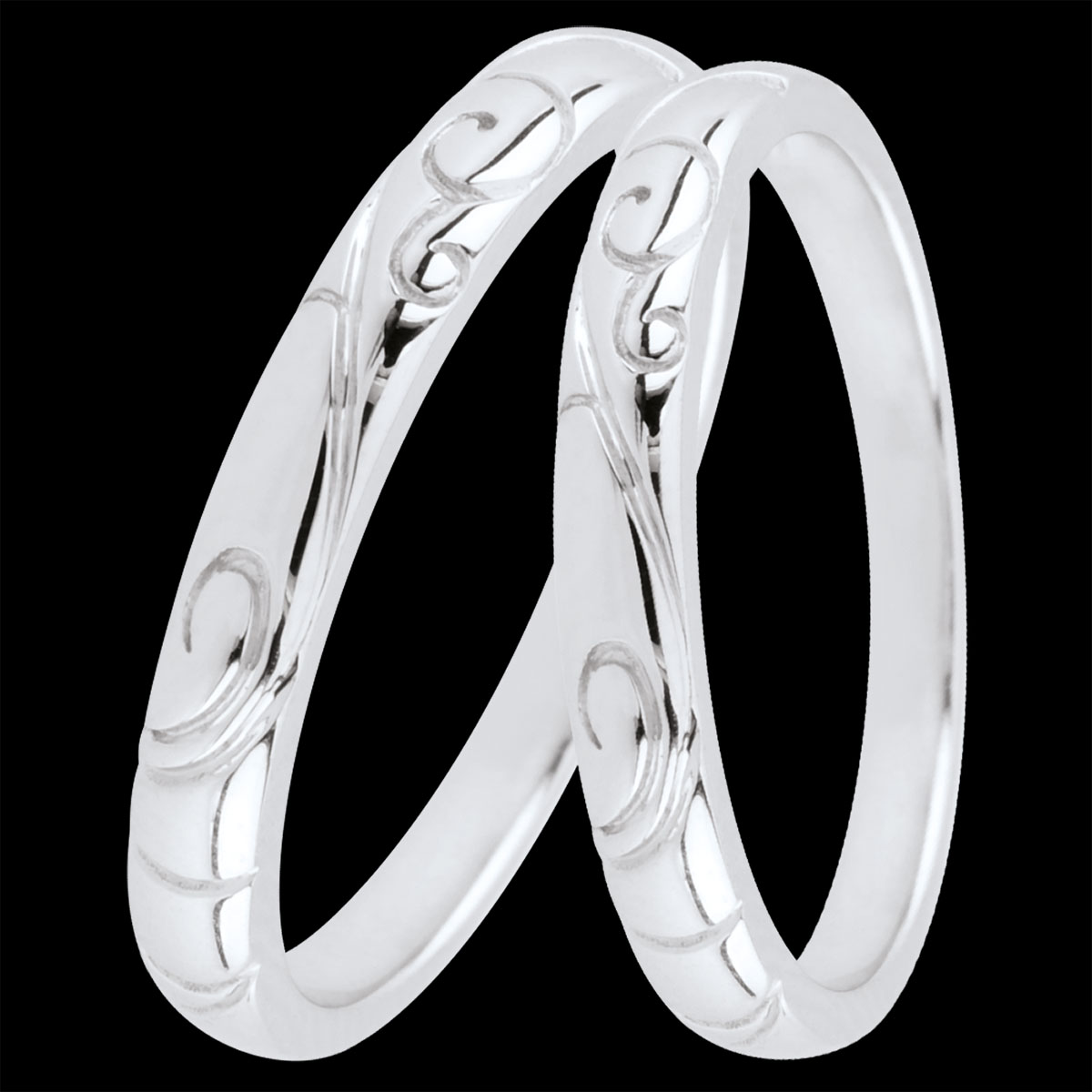 Un’elegante coppia di fedi impreziosita da raffinate volute e arabeschi in oro. Perfette per chi desidera celebrare il proprio amore con un tocco di stile unico.