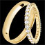 Una coppia di fedi eleganti per lei & lui. Una fede con diamanti a giro completo, composta da 29 diamanti rotondi per un totale di 1,11 carati per lei, e una fede in oro giallo lucido di 3 mm per lui.…