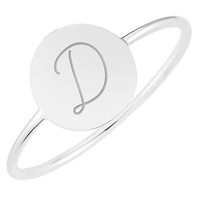 ABC YOURS N. 23Anello medaglione rotondo inciso - Oro bianco 9 carati ID : 4925