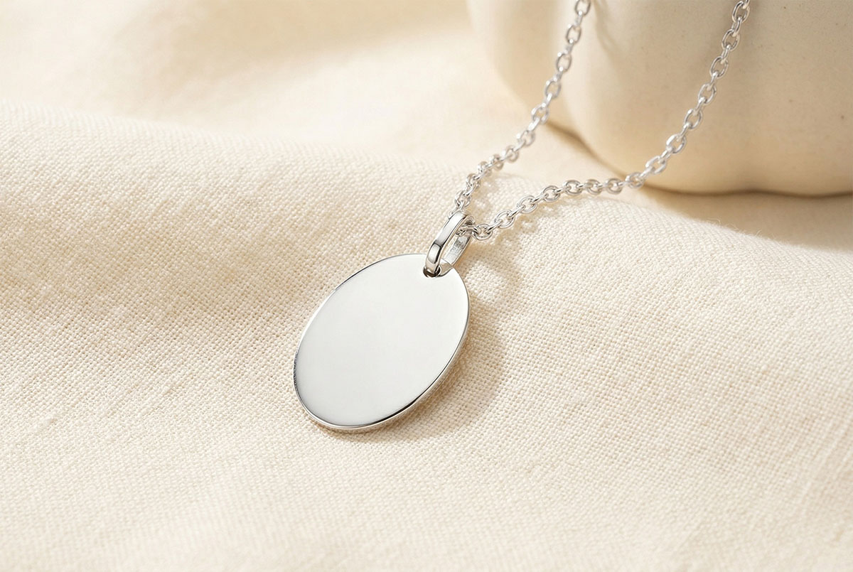 Medaglietta ovale da incidere - Oro bianco 18 carati