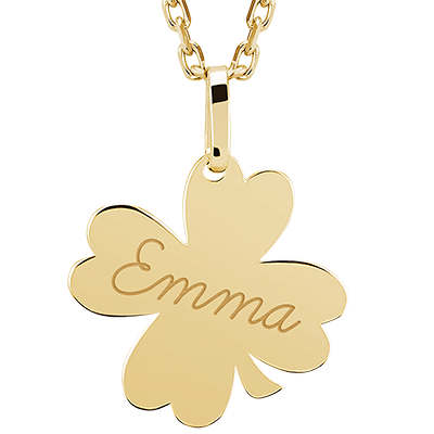 LOVELY YOURS N. 21Medaglietta quadrifoglio incisa - Oro giallo 9 carati ID : 4800