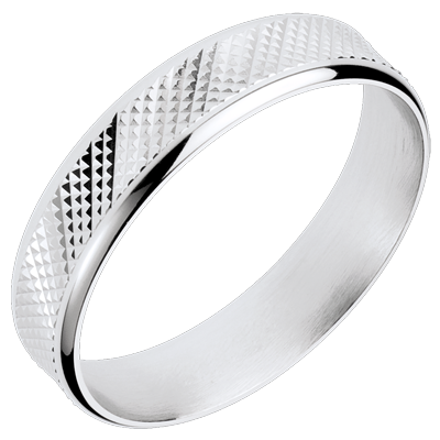 Un motivo grafico per sottolineare questo anello contemporaneo in Oro bianco, pieno di stile e di carattere.