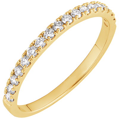 Una fede nuziale semi pavé, classica e dallo stile senza tempo, un vero must have della gioielleria.
