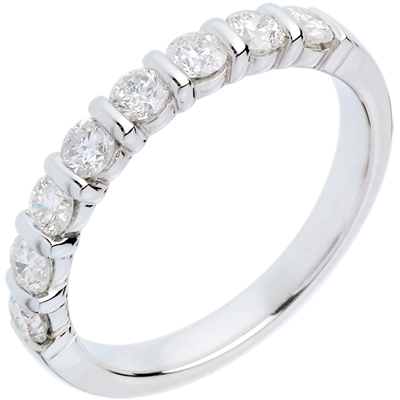Fede nuziale - Oro bianco semi pavé - 18 carati - 8 Diamanti - incastonatura a barretta - 0.65 carati