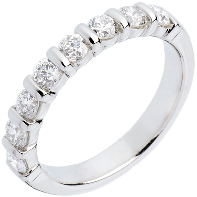 Fede nuziale - Oro bianco semi pavé - 18 carati - 8 Diamanti - incastonatura a barretta - 0.75 carati