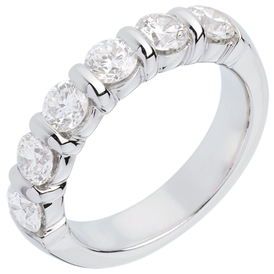 Fede nuziale - Oro bianco semi pavé - 18 carati - 6 Diamanti - incastonatura a barretta - 1.5 carati