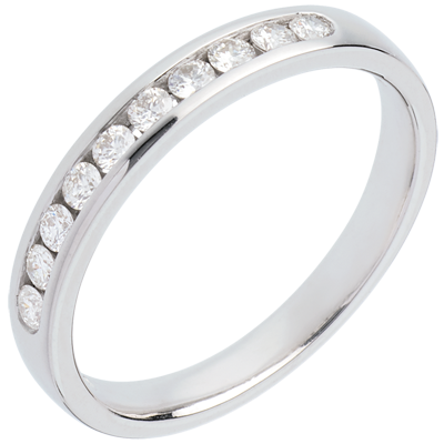Fede nuziale - Oro bianco semi pavé - 18 carati - 10 Diamanti - incastonatura a binario - 0.25 carati