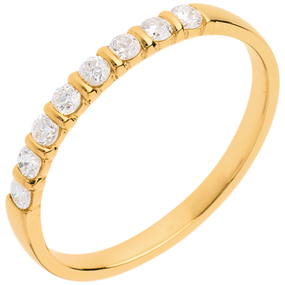 Fede nuziale - Oro giallo semi pavé - 18 carati - 8 Diamanti - incastonatura a barretta - 0.25 carati
