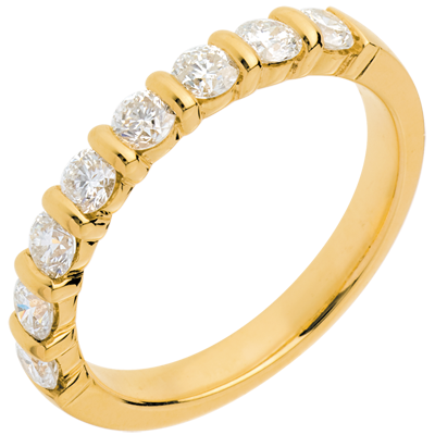 Fede nuziale - Oro giallo semi pavé - 18 carati - 8 Diamanti - incastonatura a barretta - 0.65 carati