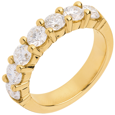 Fede nuziale - Oro giallo semi pavé - 18 carati - 7 Diamanti - incastonatura a griffe - 1.57 carati
