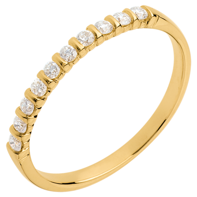 Fede nuziale - Oro giallo semi pavé - 18 carati - 10 Diamanti - incastonatura a barretta - 0.2 carati