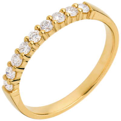 Fede nuziale - Oro giallo semi pavé - 18 carati - 9 Diamanti - incastonatura a griffe - 0.3 carati