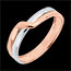 Il cerchio in oro bianco è avvolto con passione da un nastro in oro rosa, simbolo di unione e complementarità.