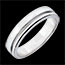 Una linea orizzontale attraversa l’anello, donando leggerezza e originalità a questa fede larga.