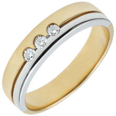 Questa fede dal design leggero è attraversata da una linea orizzontale e impreziosita da una trilogia di diamanti.
