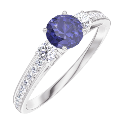 « L'ATELIER » N. 1000777Anello Oro bianco 18 carati - Zaffiro sintetico Rotonda 0.3 Carati - Pietre laterali Diamante di laboratorio - Incastonatura Diamante di laboratorio 4.5