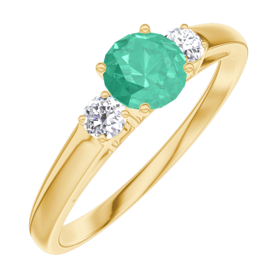 « L'ATELIER » N. 1001252Anello Oro giallo 9 carati - Smeraldo sintetico Rotonda 0.3 Carati - Pietre laterali Diamante di laboratorio 4.5