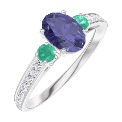 « L'ATELIER » Nº1002506Anello Oro bianco 9 carati - Zaffiro sintetico Ovale 0.5 Carati - Pietre laterali Smeraldo - Incastonatura Diamante di laboratorio