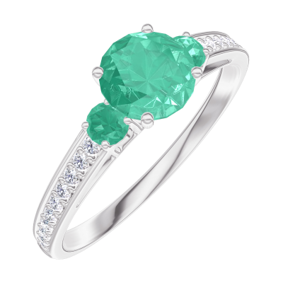 « L'ATELIER » Nº1002746Anello Oro bianco 9 carati - Smeraldo sintetico Rotonda 0.5 Carati - Pietre laterali Smeraldo - Incastonatura Diamante di laboratorio 4.5