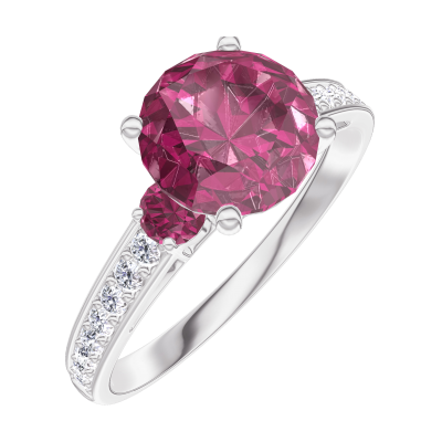 « L'ATELIER » N. 1004634Anello Oro bianco 9 carati - Rubino sintetico Rotonda 1 Carati - Pietre laterali Rubino - Incastonatura Diamante di laboratorio 4.8