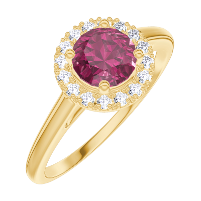 « L'ATELIER » N. 1006353Anello Oro giallo 9 carati - Rubino sintetico Rotonda 0.5 Carati - Halo Diamante di laboratorio 4.7