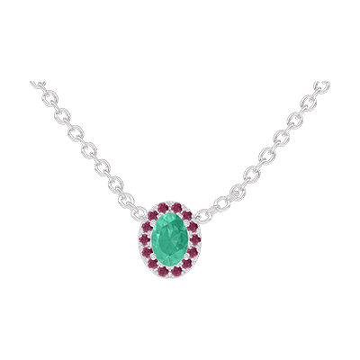 « L'ATELIER » N. 1013589Collana Oro bianco 18 carati - Smeraldo sintetico Ovale 0.3 Carati - Halo Rubino - Catena Rolò