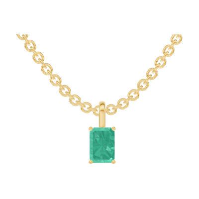 « L'ATELIER » N. 1016372Ciondolo Oro giallo 9 carati - Smeraldo sintetico Rettangolo 0.3 Carati - Catena Rolò