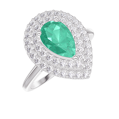 « L'ATELIER » Nº1064520Anello Oro bianco 9 carati - Smeraldo sintetico Goccia 0.5 Carati - Halo Diamante di laboratorio