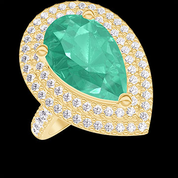 « L'ATELIER » N. 1377955Anello Oro giallo 18 carati - Smeraldo Goccia 2 Carati - Halo Diamante - Incastonatura Diamante
