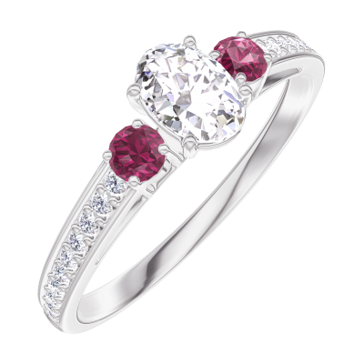 « L'ATELIER » N. 160348Anello Oro bianco 9 carati - Diamante Ovale 0.3 Carati - Pietre laterali Rubino - Incastonatura Diamante 5