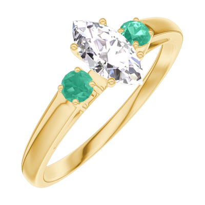 « L'ATELIER » Nº160581Anello Oro giallo 18 carati - Diamante Marchesa 0.3 Carati - Pietre laterali Smeraldo