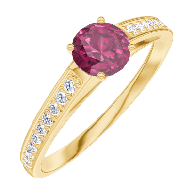« L'ATELIER » N. 160606Anello Oro giallo 9 carati - Rubino Rotonda 0.3 Carati - Incastonatura Diamante 4.5