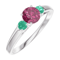Anello Oro bianco 18 carati - Rubino Rotonda 0.3 Carati - Pietre laterali Smeraldo