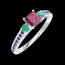 Anello Oro bianco 9 carati - Rubino Principessa 0.3 Carati - Pietre laterali Smeraldo - Incastonatura Zaffiro blu