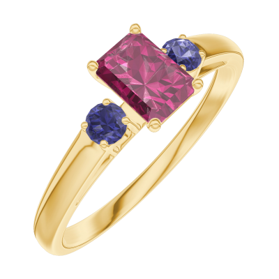 « L'ATELIER » Nº160861Anello Oro giallo 18 carati - Rubino Rettangolo 0.3 Carati - Pietre laterali Zaffiro blu