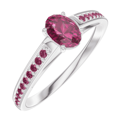 « L'ATELIER » Nº160911Anello Oro bianco 18 carati - Rubino Ovale 0.3 Carati - Incastonatura Rubino 5